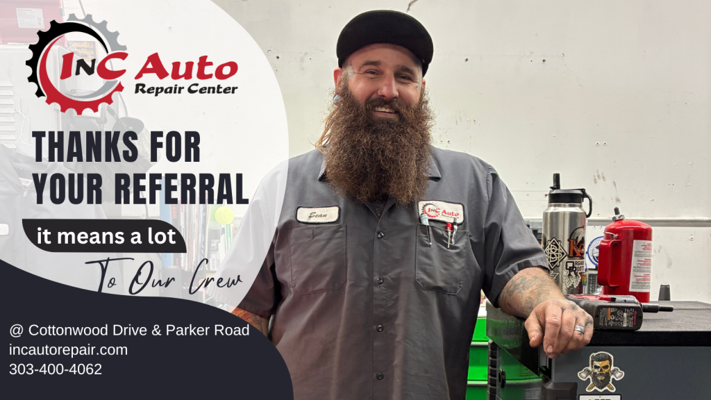 InC Auto Repair Center offers our best Oil Change pricing in Parker CO. Don’t miss our Monthly Spotlight on car care tips and deals available to our new and loyal Parker, Colorado customers. Our oil change includes up to 5 quarts, and our exclusive 32-point Vehicle Health & Safety Evaluation. If your vehicle needs it, we will rotate the tires at no charge. We are conveniently located in the Cottonwood Plaza at Cottonwood Drive and Parker Road, just north of C-470. These same auto repair deals are available at our second shop, Golden Triangle Auto Care located on Speer Blvd. in Downtown Denver. Specialized filters supplies, and taxes are extra; ask our front desk service team for a quote when you schedule your appointment.